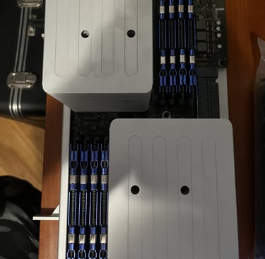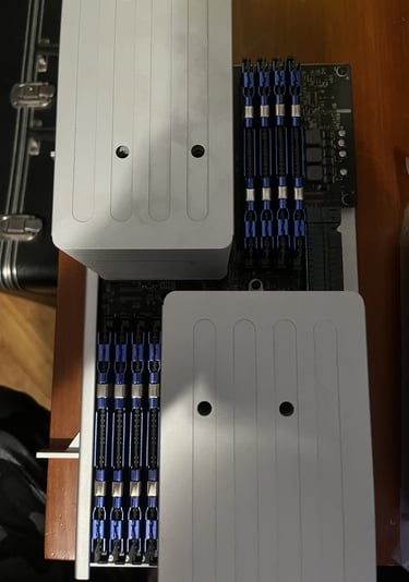 Once I got my hands on this machine I began wiping down the outside of the chassis before opening it. Once clean I opened the machine and was surprised to see it was running dual CPUs, had 8 ram slots and a GPU. After cleaning I reapplied thermal paste and booted up the machine. It immediately booted into High Sierra and after checking the systems specs I noticed the only thing that should be upgraded was the RAM. I got 8 16GB 1333MHz GDDR3 RAM sticks online maxing out the RAM on my system.