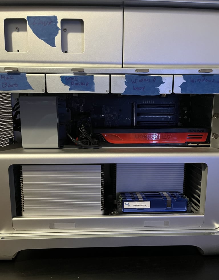 I've always enjoyed building and modifying computers, so when my dad offered me the opportunity to take his old 2012 Mac Pro, I didn't hesitate. It was slow and outdated for his needs, but I saw potential. After cleaning and upgrading I turned it into a triple-boot machine that is great for tinkering in different operating systems. I currently use the machine for school work and programming.
