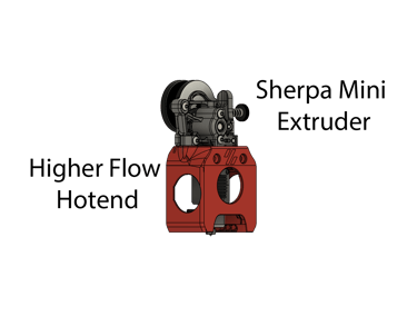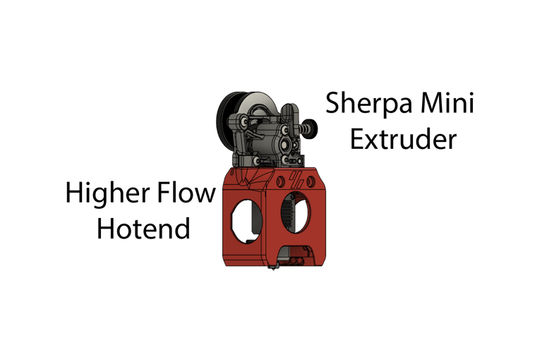 Due to the motion system of this printer being created for speed, the velocity of this printer can be extremely high compared to most other machines. The average 3D printer can move at around 50-100mm/s when printing with a maximum travel movement of around 300mm/s without any issues. However, on my machine, I was able to reach around 225-350mm/s printing speed and a maximum of 650mm/s travel movements without any issues. Even though I can move this machine extremely fast the plastic that melts to create a part was not melting fast enough causing clogs. To combat this I created a tool head using a different extruder than the standard Voron extruder and a different hotend with a larger melt zone. These 2 additions allowed me to print at these speeds without any issues. The better extruder allowed me to push the filament into the hotend quickly due to the ability to supply more amps to the stepper motor without it getting extremely hot. On top of this the increase in gear ratio allowed for better grip on the filament. The better hotend allowed for an increase in flow rate (the rate at which the molten plastic gets extruded) through the use of a bigger heat zone, with a nozzle that expands the contact surface of the nozzle internally while also having a bigger hole for the filament to flow out of. These 3 factors combined allow for a major increase in flow rates. This increase enables me to lay down layers at speeds higher than this printer can achieve without any upgrades to the motion system. The tool heads frame is completely 3D printed.