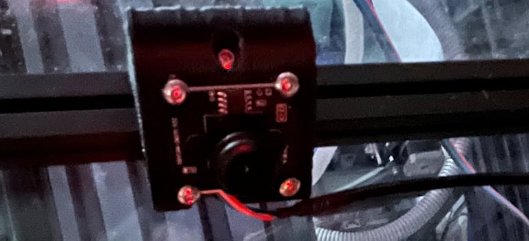 Since I am unable to babysit my printer constantly, I decided to add a camera to the machine. Within the web interface of the machine, I added a section for the camera stream to allow me to actively view my prints. With this camera, I can use an open-source script to allow the printer to record prints, take time-lapses, pictures, and pause active prints automatically if it fails.